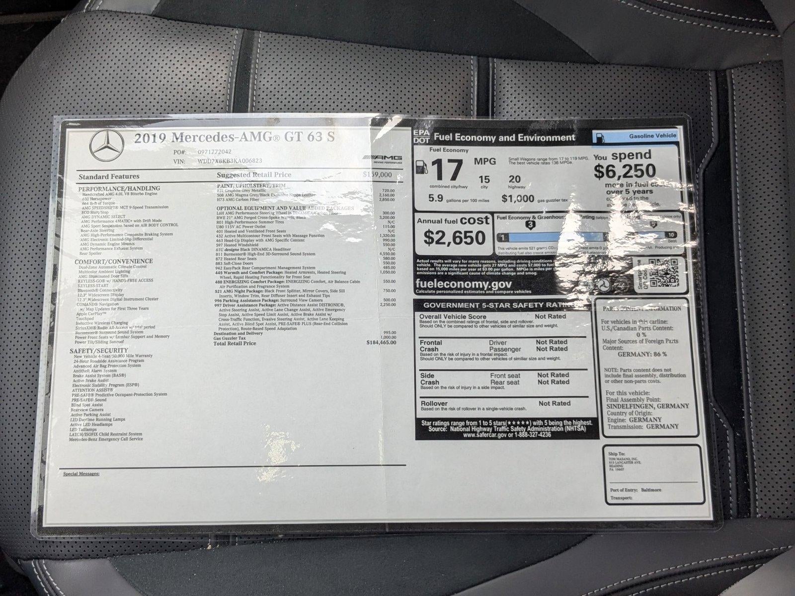 Porsche Hunt Valley has a wide selection of exceptional pre-owned vehicles to choose from, including this 2019 Mercedes-Benz AMG GT. Quality and prestige abound with this Mercedes-Benz AMG GT AMG GT 63 S. Once you see this Mercedes-Benz, you'll quickly see that this is the perfect vehicle for the outdoor junky! You'll even feel relaxed knowing that this All-Wheel drive vehicle will get you to where you are going no matter what may come your way. Also, with this Mercedes-Benz AMG GT's dependable control you'll be able to drive into the sunset without a care in the world! The incredibly low mileage and painstaking upkeep on this Mercedes-Benz AMG GT makes it a once-in-a-lifetime deal that won't last long! Call us today to reserve your test drive! This is the one. Just what you've been looking for.