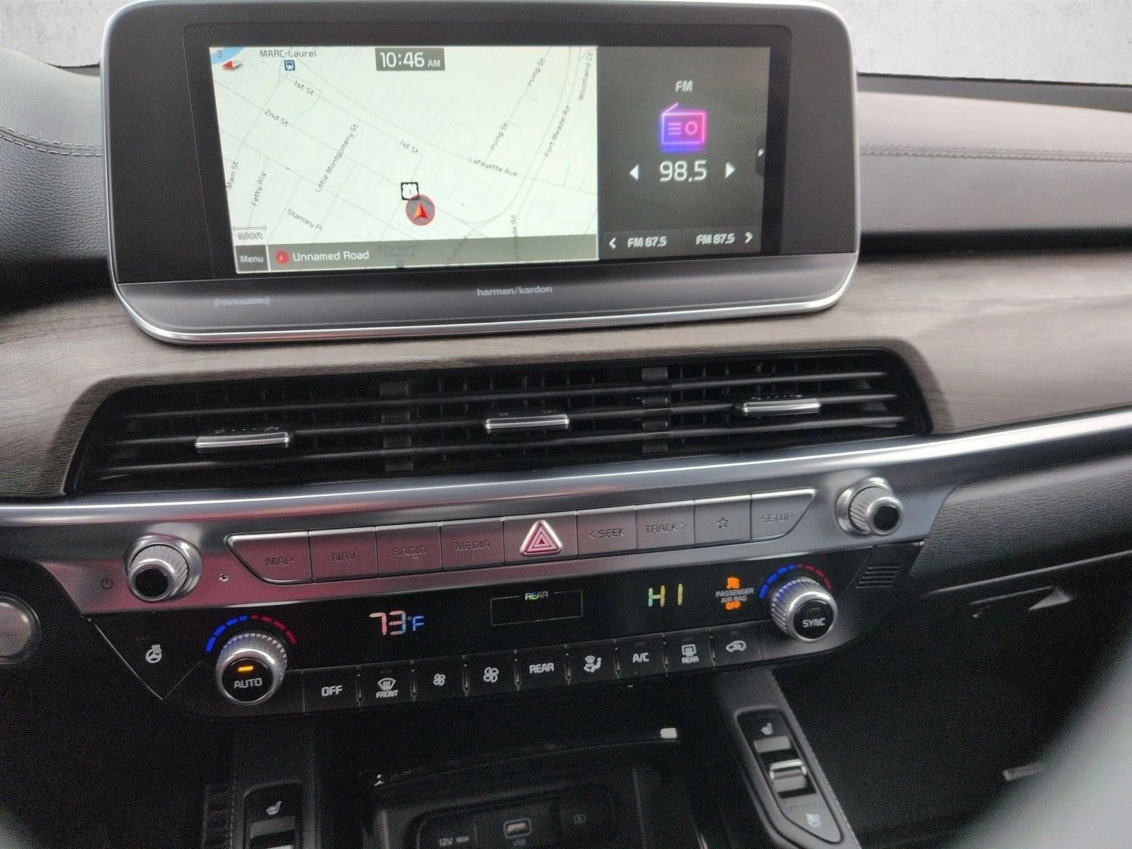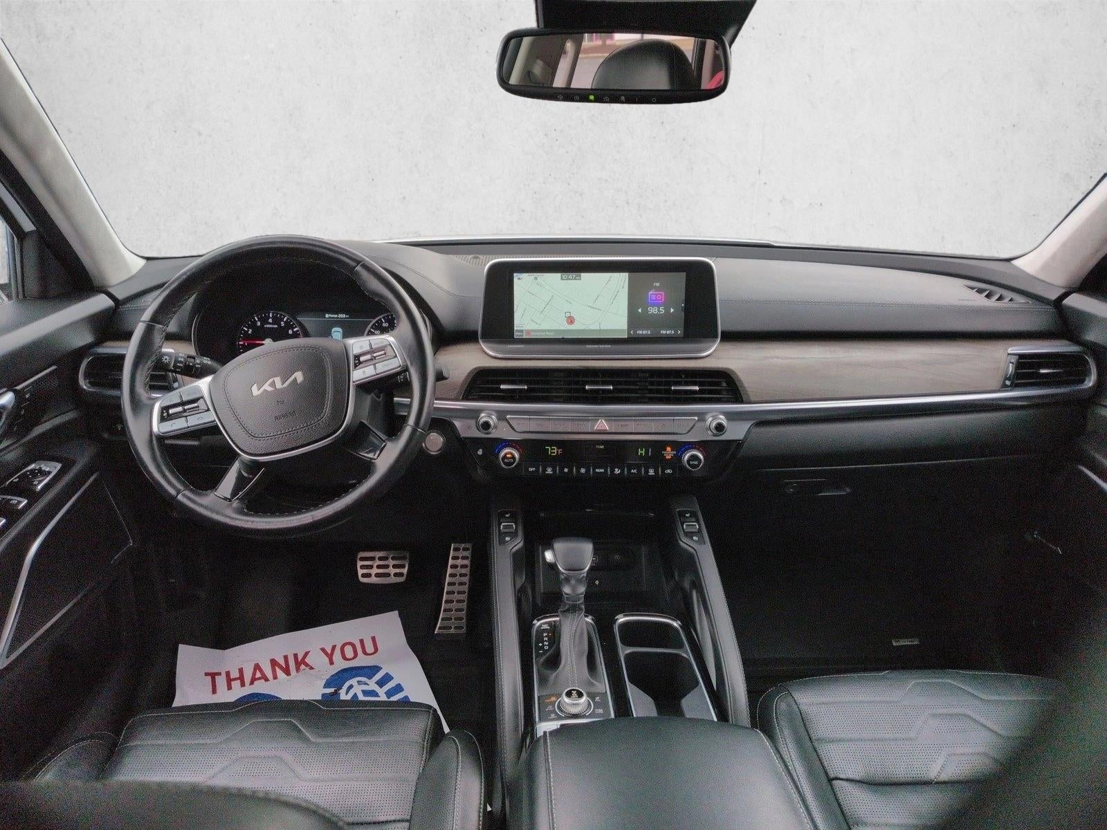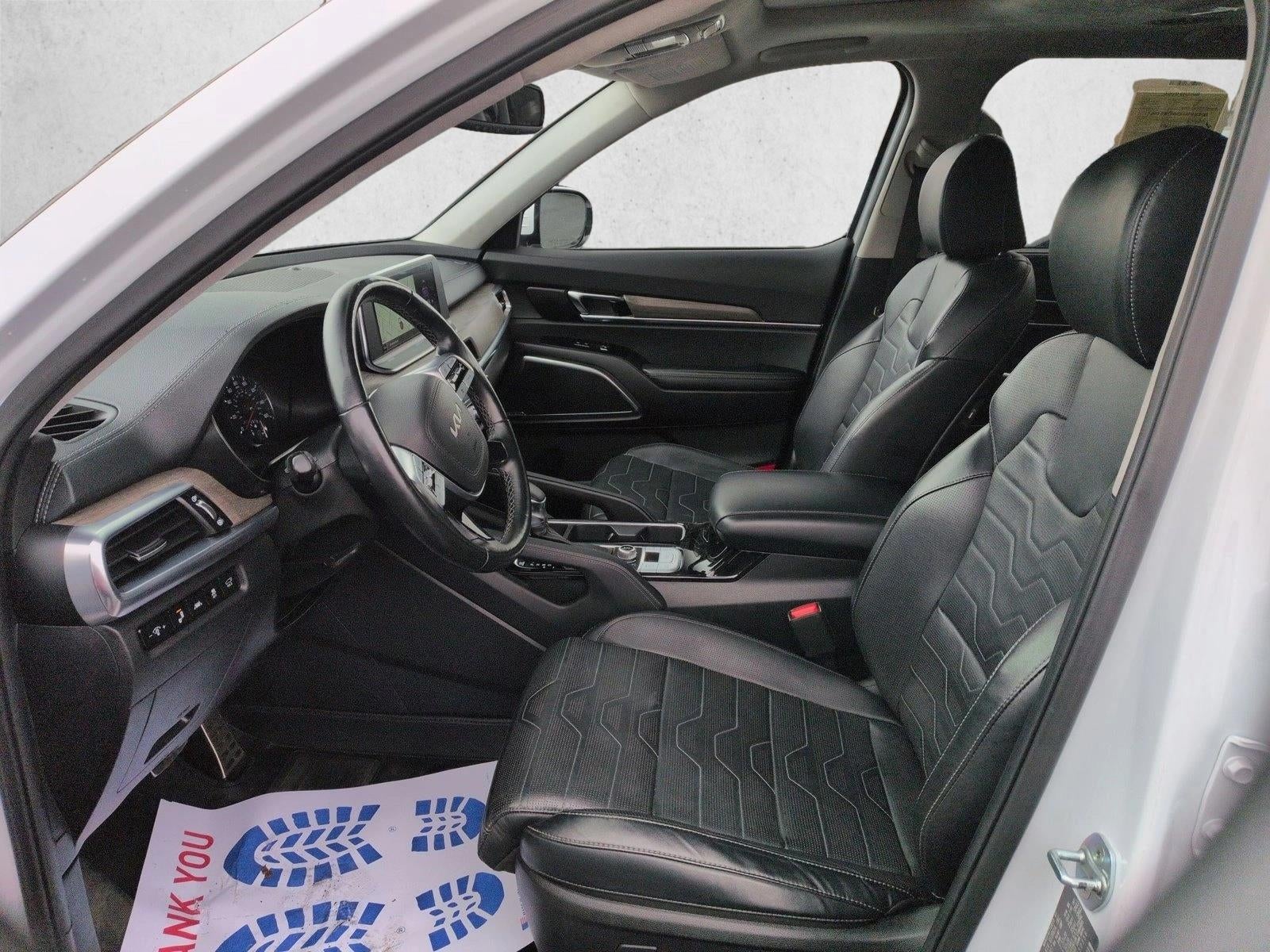 Experience bold design and upscale capability with the 2022 Kia Telluride SX, the most luxurious trim in the Telluride lineup. Powered by a robust 3.8-liter V6 engine paired to an 8-speed automatic transmission, the Telluride SX delivers confidence and smooth performance for every drive. Its striking exterior is highlighted by LED headlights and fog lamps, 20 alloy wheels with black finish, gloss-black accents, and dual panoramic sunroofs that elevate presence and style. Step inside a thoughtfully crafted interior that includes premium leather seating, heated and ventilated front seats, 10-way power drivers seat with memory settings, and second-row captains chairs. A 10.25 touchscreen with navigation, Apple CarPlay/Android Auto, and a Harman Kardon 10-speaker audio system keep everyone connected and entertained. Safety and technology are also at the forefront surround-view cameras, Blind-Spot View Monitor, front parking sensors, and advanced driver-assist systems enhance confidence on every journey. With thoughtful details like wireless charging, a hands-free power liftgate, 64-color ambient lighting, and driver-focused conveniences, the Telluride SX offers premium comfort in a three-row SUV.