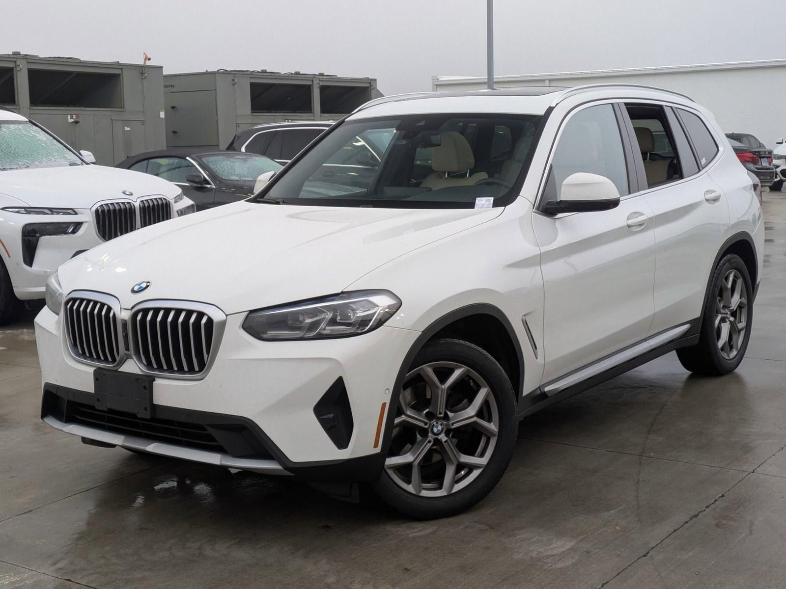 2023BMWX3 This BMW includes: PREMIUM PACKAGE W/ZPA Keyless Start Panoramic Roof Navigation System Heated Steering Wheel Hands-Free Liftgate Generic Sun/Moonroof Heated Front Seat(s) Power Door Locks Keyless Entry Sun/Moonroof Hard Disk Drive Media Storage Remote Trunk Release MP3 Player HEATED FRONT SEATS Heated Front Seat(s) HARMAN/KARDON SURROUND SOUND SYSTEM Premium Sound System REMOTE ENGINE START Remote Engine Start HEATED STEERING WHEEL Heated Steering Wheel PANORAMIC MOONROOF (ZPA) ZPA Panoramic Roof Generic Sun/Moonroof Sun/Moonroof TRAILER HITCH Tow Hitch WIRELESS CHARGING PARKING ASSISTANCE PACKAGE Automatic Parking Back-Up Camera Aerial View Display System WHEELS: 19 Aluminum Wheels CANBERRA BEIGE, PERFORATED SENSATEC UPHOLSTERY Premium Synthetic Seats DRIVE RECORDER *Note - For third party subscriptions or services, please contact the dealer for more information.* The BMW X3 xDrive30i offers a fair amount of utility thanks to its advanced features and unique styling. It's also quite sporty, and injects an ample amount of handling chutzpah into the ridin'-high body of a family-friendly SUV. You deserve a vehicle designed for higher expectations. This BMW X3 xDrive30i delivers with a luxurious, well-appointed interior and world-class engineering. Enjoy driving? Well now you will get more thrills behind the wheel thanks to the heightened performance of AWD. Better handling. Better traction. Better driving experience. A BMW with as few miles as this one is a rare find. This X3 xDrive30i was gently driven and it shows. Let's be honest, not everyone wants to set a course blindly into the dark. For those of us that don't, there are vehicles like this with stellar navigation systems.