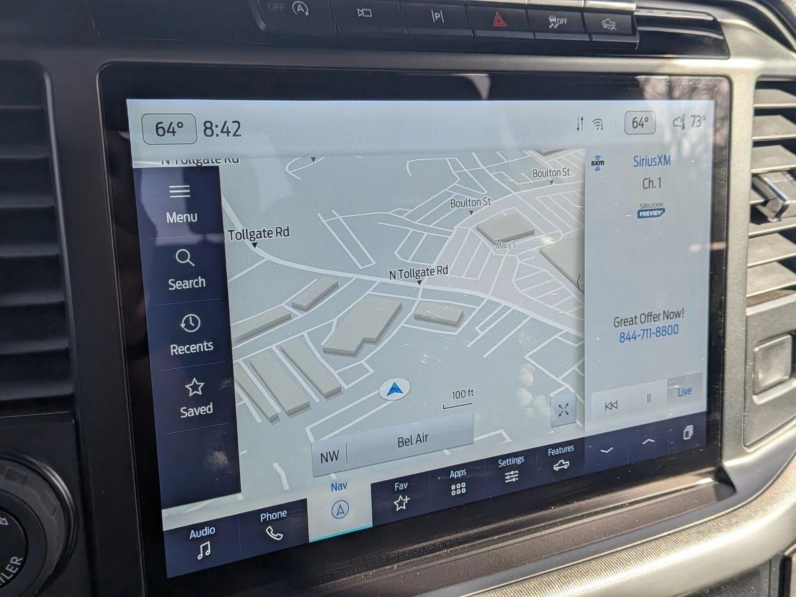 - SYNC 4 w/Enhanced Voice Recognition -inc: 12" LCD capacitive touchscreen w/swipe capability, information on demand panel, wireless phone connection, cloud connected, AppLink w/App catalog, 911 Assist, Apple CarPlay and Android Auto compatibility, digital owners manual, conversational voice command recognition and connected built-in navigation, Note: Navigation services require SYNC 4 and FordPass Connect (optional on select vehicles), complimentary connect service and the FordPass app (see FordPass Terms for details), Eligible vehicles receive a complimentary 3-year trial of navigation services that begins on the new vehicle warranty start date, Customers must unlock the navigation service trial by activating the eligible vehicle w/a FordPass member account, If not subscribed by the end of the complimentary period, the connected navigation service will terminate, and the system will revert to embedded offline navigation, Connected service and features depend on compatible AT&T network availability, Evolving technology/cellular networks/vehicle capability may limit functionality and prevent operation of connected features, FordPass app, compatible w/select smartphone platforms, is available via a download, Message and data rates may apply