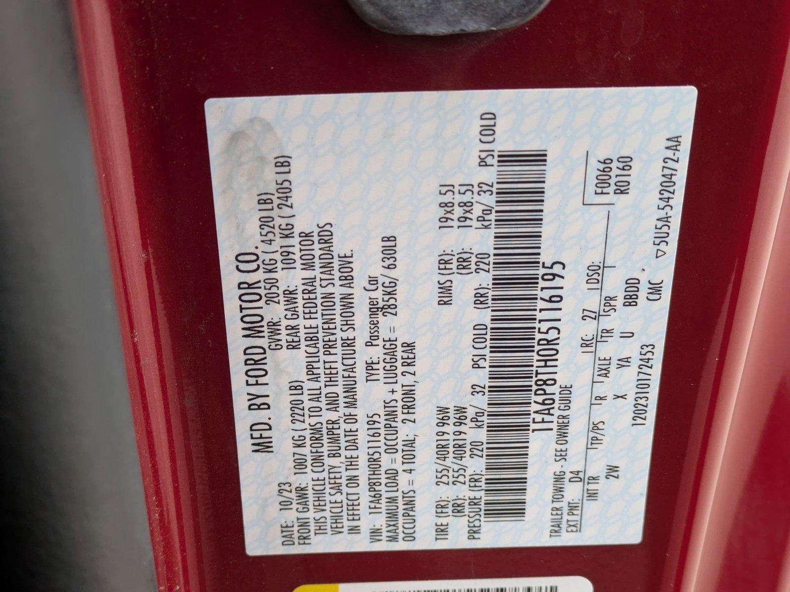 Thank you for visiting another one of BMW of Rockville's online listings! Please continue for more information on this 2024 Ford Mustang EcoBoost with 33,181mi. This Ford includes: ENGINE: 2.3L ECOBOOST 4 Cylinder Engine Gasoline Fuel Turbocharged *Note - For third party subscriptions or services, please contact the dealer for more information.* You don't have to sacrifice style or comfort with this fuel-efficient Ford Mustang. It's not often you find just the vehicle you are looking for AND with low mileage. This is your chance to take home a pre-owned and barely driven Ford Mustang. You could keep looking, but why? You've found the perfect vehicle right here.